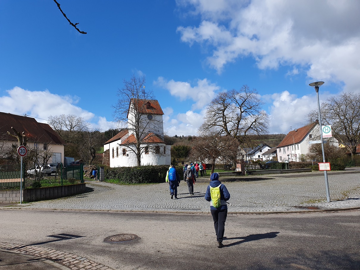 Im Zeichen der Muschel lud Ende März die Regionalgruppe Bliesgau/Obere Saar der St. Jakobus-Gesellschaft Rheinland-Pfalz – Saarland e.V.  ins saarländische Altheim ein. Die Ortsvorsteherin Beate Lambert begrüßte die Pilger in der Kirche St. Andreas und führte durch Kirche und den historischen Kirchturm. Diakon Steffen Dully spendete der Pilgergemeinschaft nach dem gesungenen Ultreia einen Aussendesegen. Beeindruckt von der ersten Station noch mit ein paar Eindrücken aus dem Pirminiusgarten in Altheim zogen die Pilger nach Böckweiler. Hier befindet sich mit der St. Stephanuskirche die älteste Kirche des Saarlandes. Diese romanische Kirche war die Kirche des Jahres 2020. Die Presbyterin Marliese Rauch ließ es sich nicht nehmen, ausführlich über die Geschichte dieses Ortes mit ihrer kleinen Kirche im Zentrum in allen Facetten zu erzählen. Ihre mitreißende Darstellung der früheren Bauten und Umbauten an dieser Stelle machte deutlich, dass Marliese Rauch bereits als Kind in Böckweiler aufwuchs und gerne ihre Kirche vorstellte. Gemeinsam sangen auch hier die Jakobuspilger im Kirchenraum.
