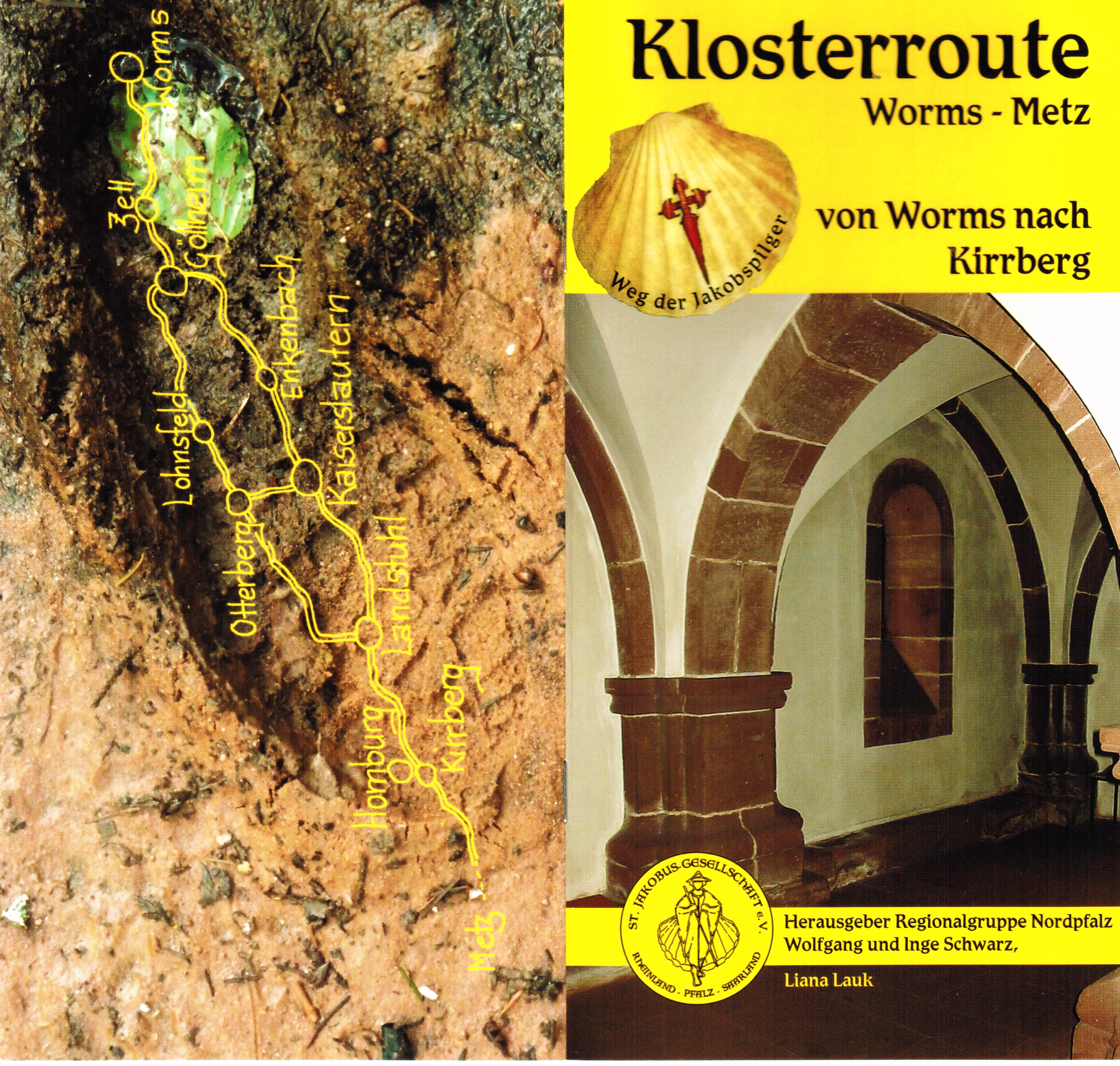 36-seitiger Taschenführer für Wander- und Pilgerfreunde (10,4 x 20,8) in Glanz-Folienkaschierung und mit Einschub, passend in einen Briefumschlag im Querformat: DIN C-6; Leicht, handlich, übersichtlich mit den wichtigsten Informationen für unterwegs (Kartenabschnitte zur Strecke Worms – Kirrberg/ Homburg/ Saar der „Klosterroute Worms-Metz“, km-Übersicht, Höhenprofile, Teilansicht des Weges durch die Städte, Stempelstellen, Unterkunftsmöglichkeiten, Tipps). Erhältlich beim Regionalsprecher W. Schwarz , Tel. 06303-7419, oder der Verfasserin Liana Lauk, Tel. 07946-2545 (8:00 bis 10:00 oder ab 22:00)