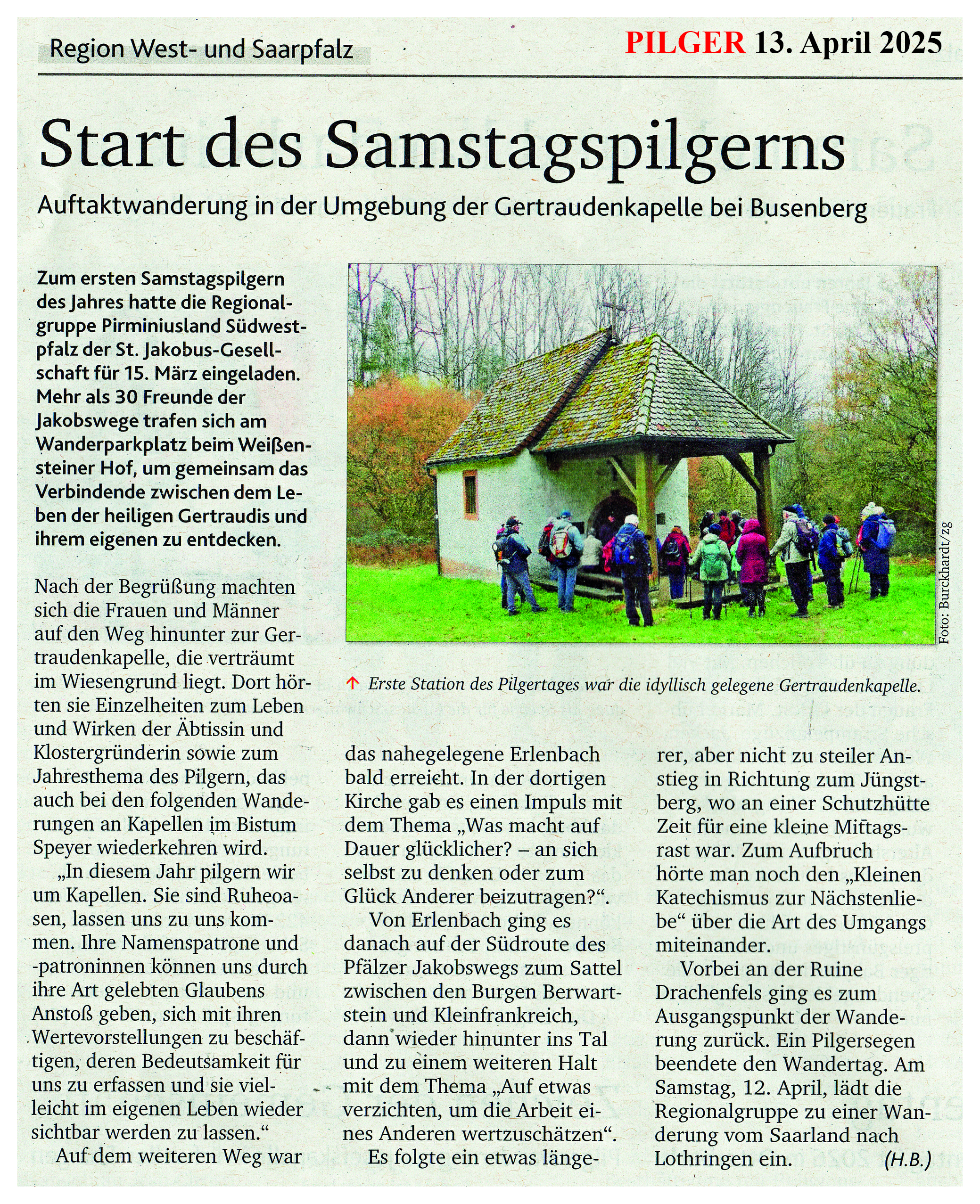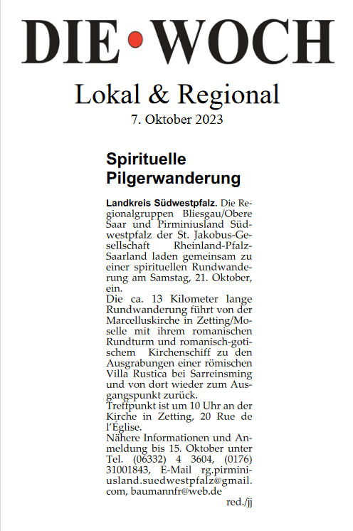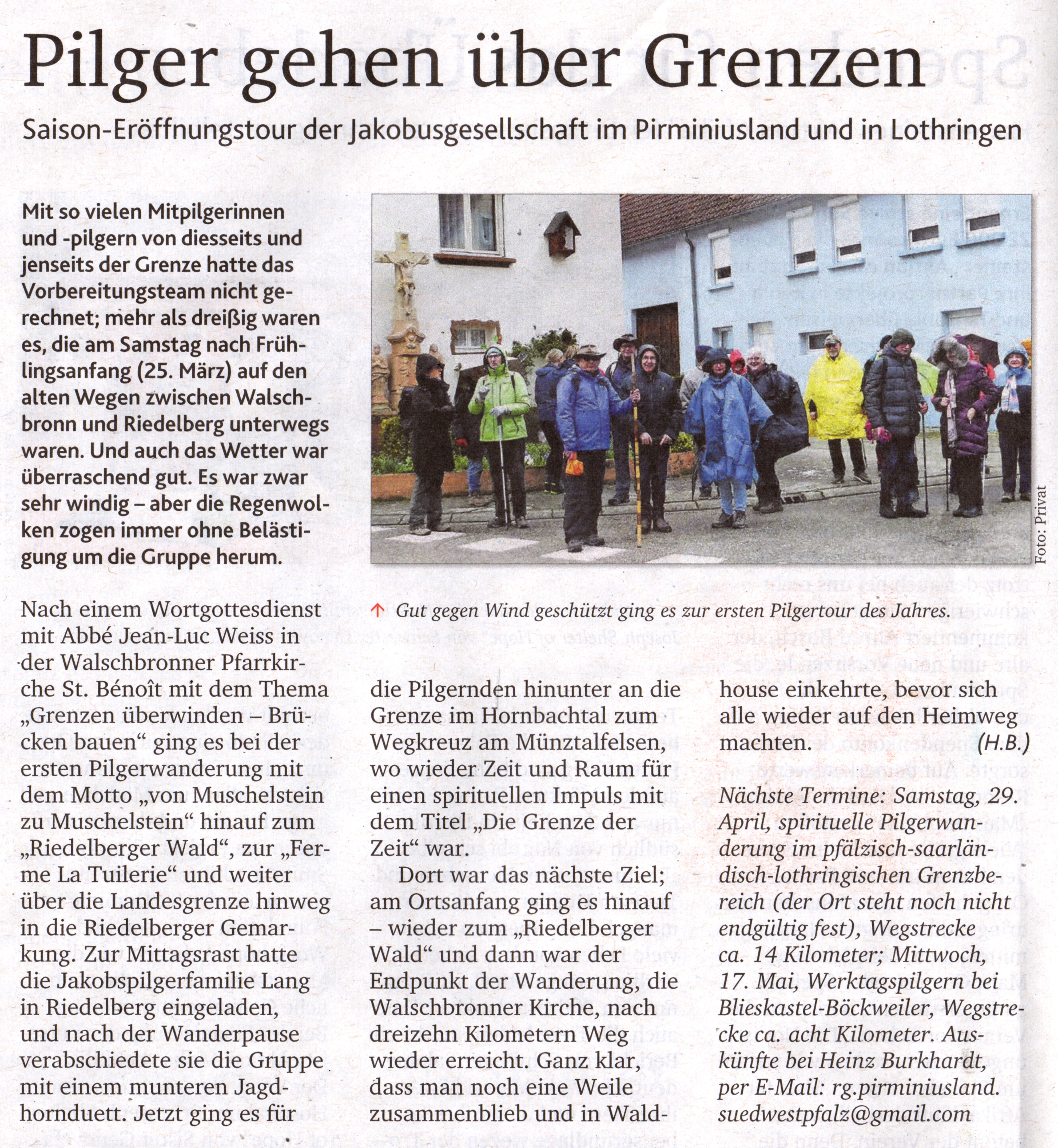 Von unserer grenzüberschreitenden Pilgerwanderung hat der „PILGER“ in seiner Ausgabe vom 09.04.2023 folgenden Artikel veröffentlicht: